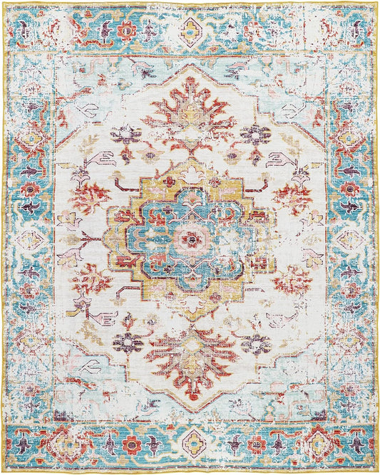 Serene Blue Medallion - Machine Washable Area Rug