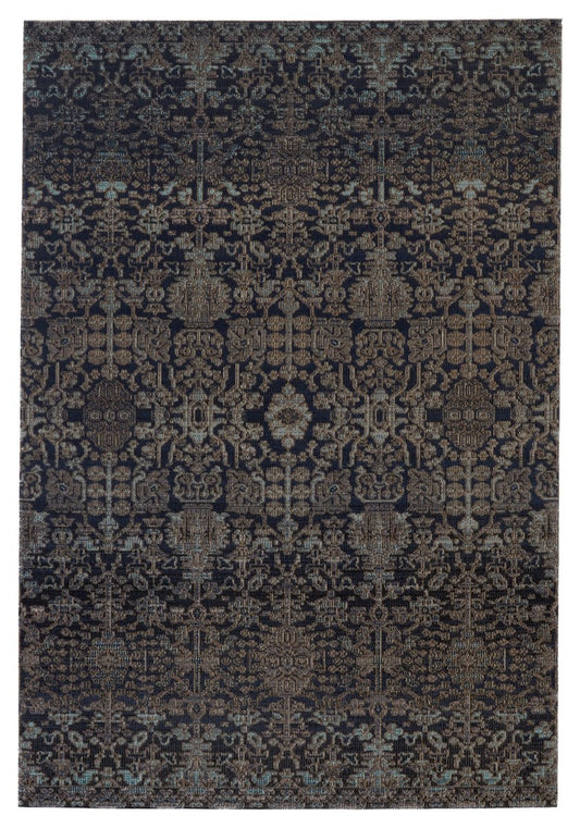 Midnight Elegance Indoor/Outdoor Dark Blue/Gray Runner Rug